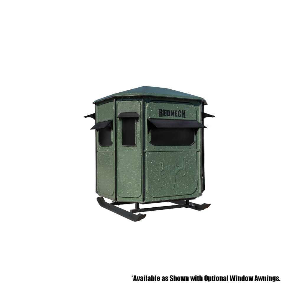 Redneck’s Hunting Blinds set the standard for functionality and comfort when hunting. The two large oversized front horizontal windows make it easy for two hunters to have a shooting window in the roomy 5×6 interior. Combining these features, you have a perfect blind for a crossbow or gun hunting, giving you plenty of room, visibility, and angles to make a perfect shot when the animal you are hunting presents itself—plenty of room for up to 2 adults.